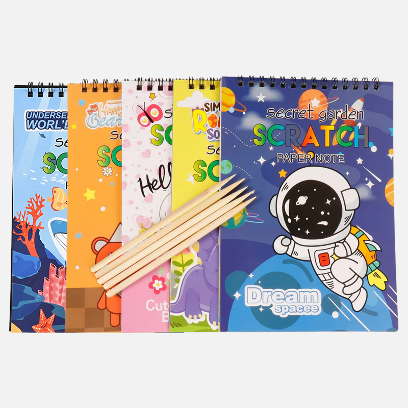 The small scratch art paper notebook is portable and travel-friendly, while the large scratch art paper notebook provides more space for detailed drawings and creative experiments.